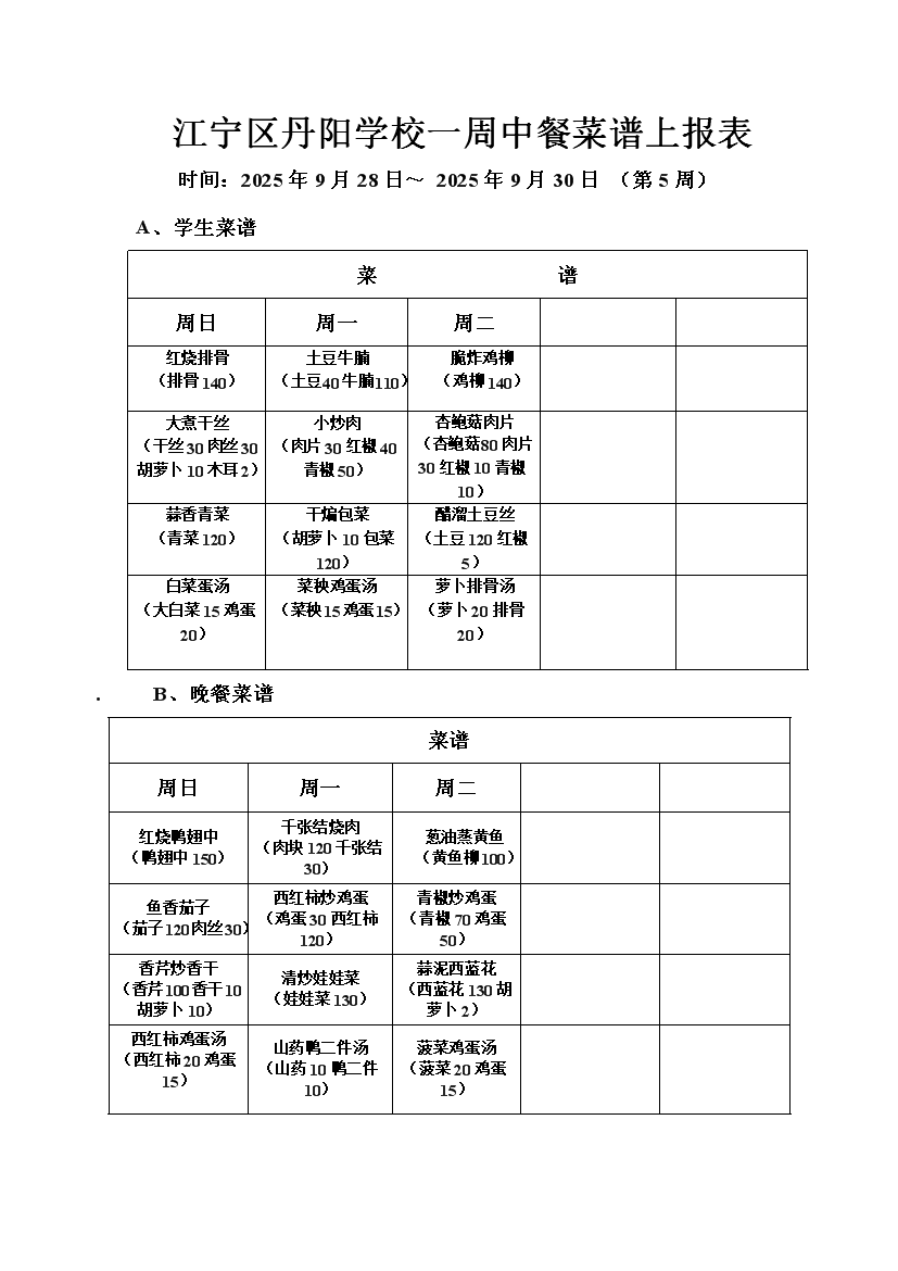 2025-2026学年度第一学期第5周菜谱